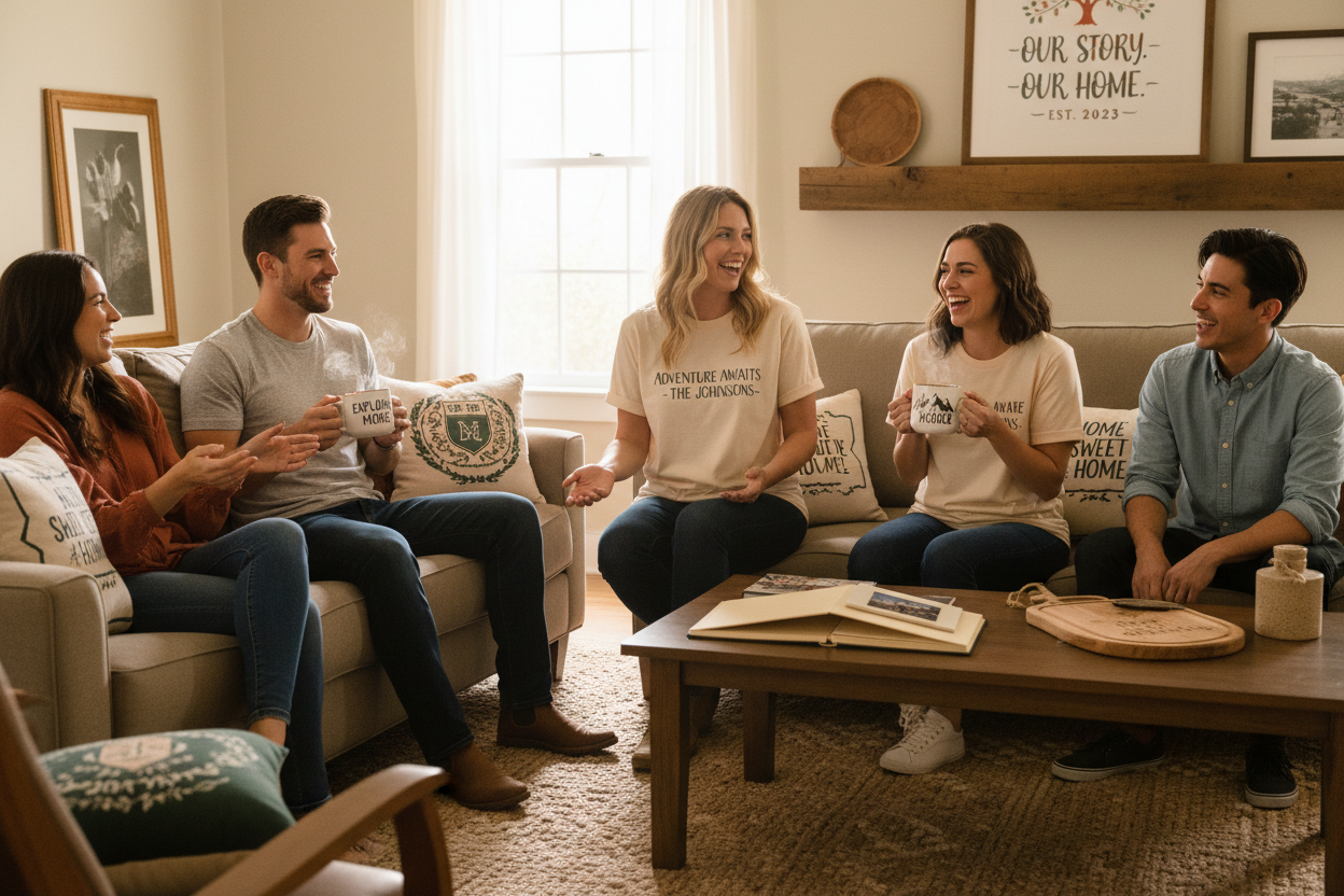 Laser engraving, full-color sublimation, and themed graphic apparel all in one place for easy gifting.